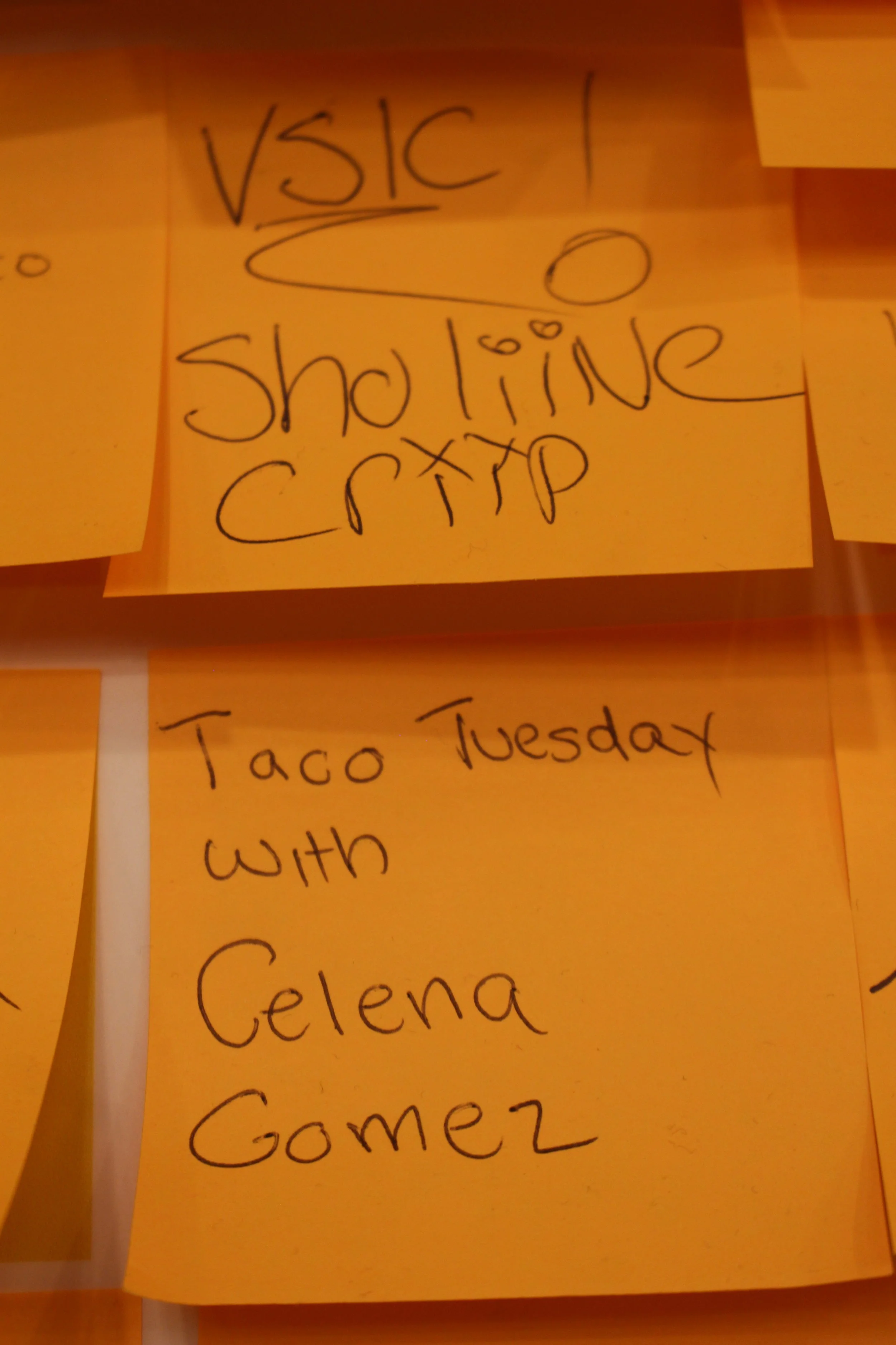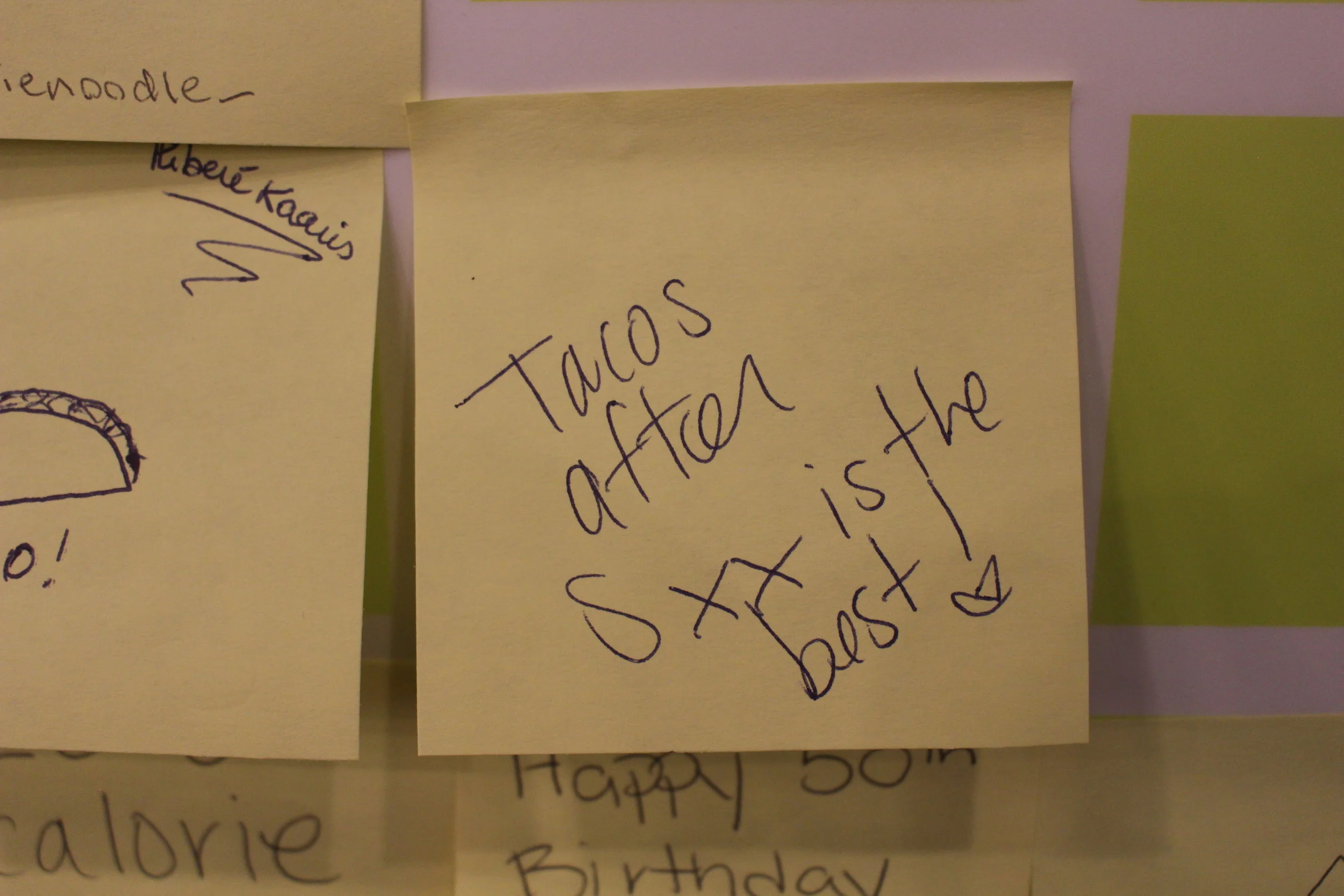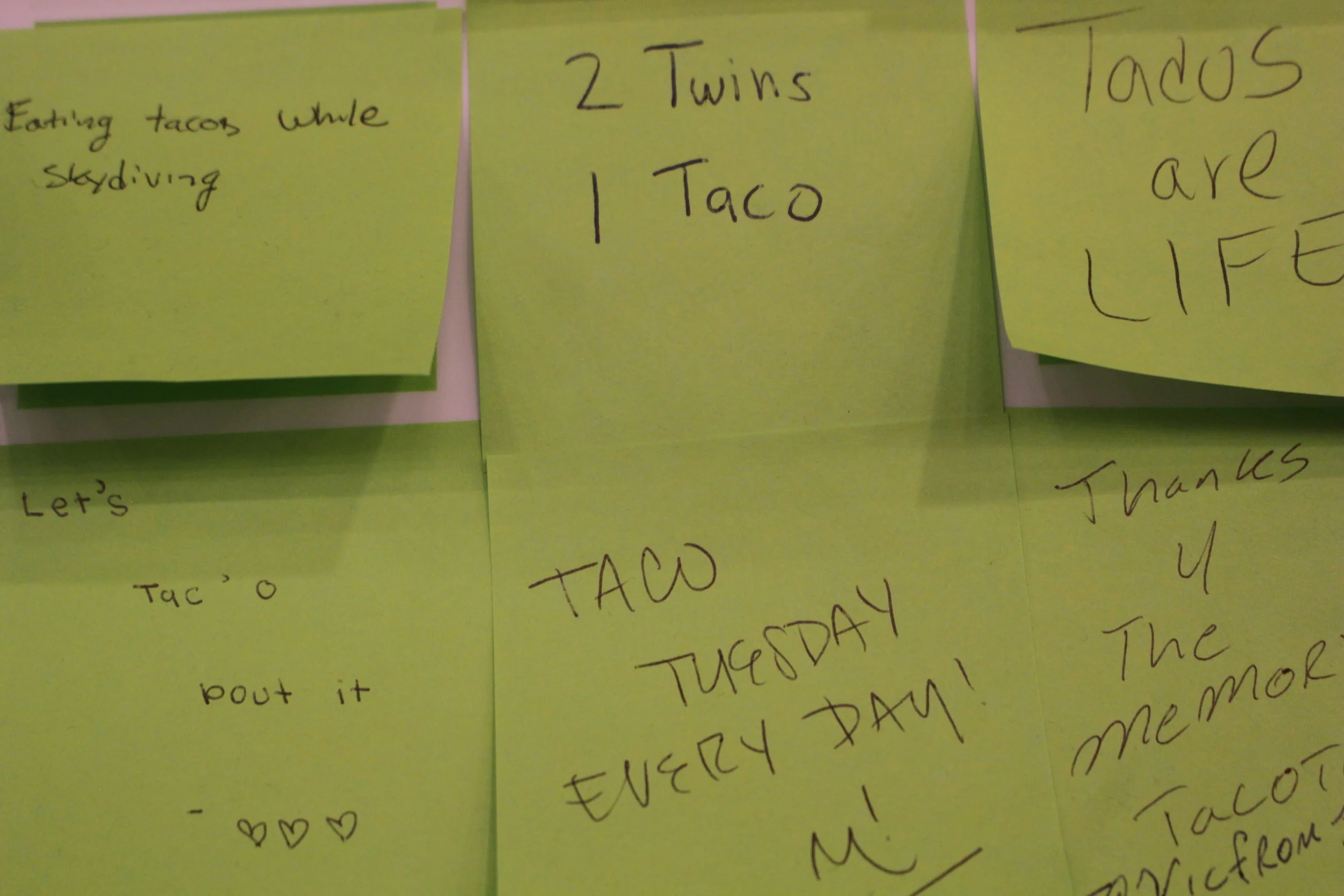 Speaking of tacos, I recently learned a lot about people’s innermost taco fantasies one afternoon on the Third Street Promenade in Santa Monica. On a whim, I decided to spring for a ticket to Tacotopia, one of those typically-annoying Instagram food museums with contrived selfie setups, and loved what was going on in the very back: a collection of visitor-generated taco dreams written on Post-Its and stuck to the wall in color-coordinated patterns that spelled out TACO. Other people were excited to be bucked off a mechanical taco and gulp down little hot sauce samples, but I spent ages blissfully photographing these Post-Its — maybe because it reminded me of a similar afternoon spent photographing graffiti written by Beatles fans on the outer walls of London’s Abbey Road Studios.